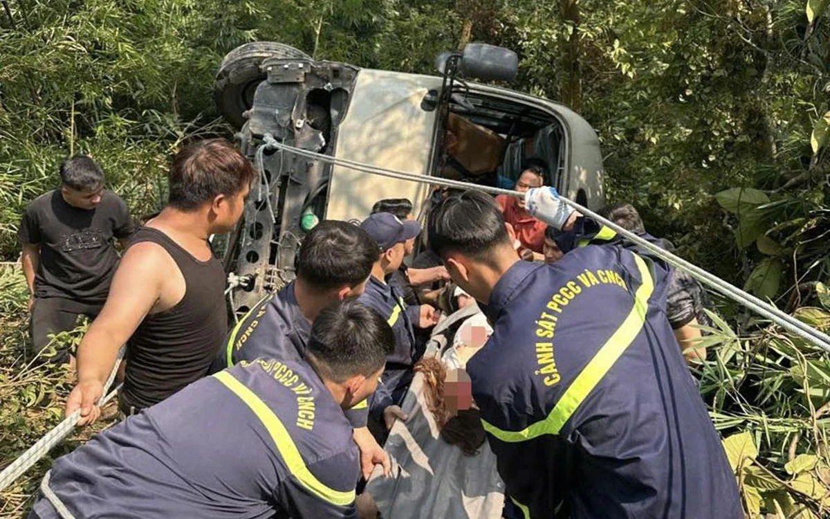 Công an điều tra nguyên nhân vụ xe khách chở đoàn nhân viên ngân hàng lao xuống vực ở Tam Đảo